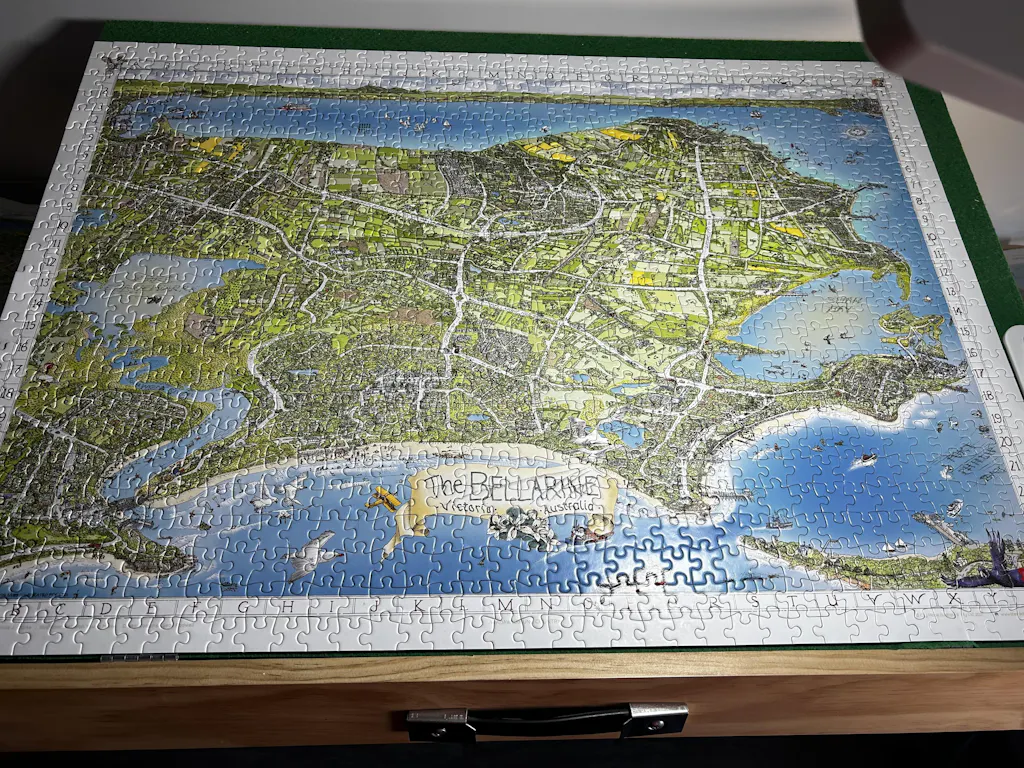 A puzzle that took a lot more time than expected . I like to do jigsaws without looking at the picture, so it really tested my knowledge of the local roads and landmarks. Love that they were labelled